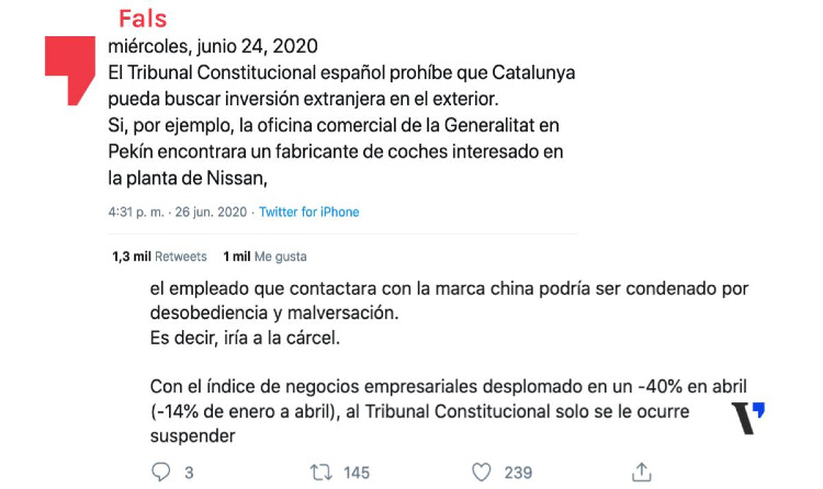 El Tribunal Constitucional manté la suspensió del pla d'acció exterior i de relacions amb la…