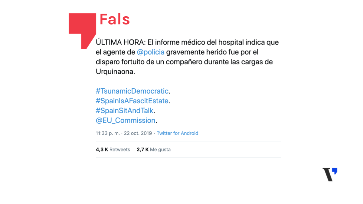 Salut: És fals que l’informe mèdic digui que el policia hagi estat greument ferit pel tret d’un company