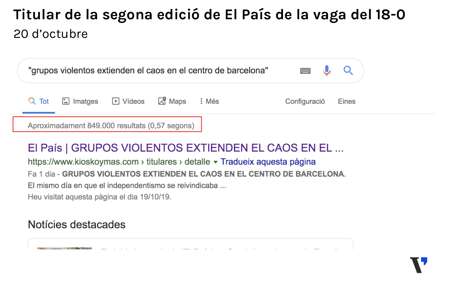 Verificat ho ha pogut comprovar mitjançant diverses fonts que conserven exemplars que el diari en paper que es va distribuir el dissabte 19 d’octubre a Catalunya portava el titular de “Grups violents”.