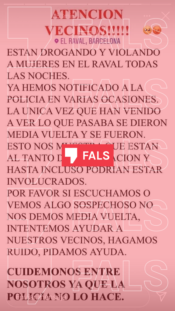 És fals que s’estiguin drogant i violant dones al Raval cada nit, com diu un missatge d’Instagram