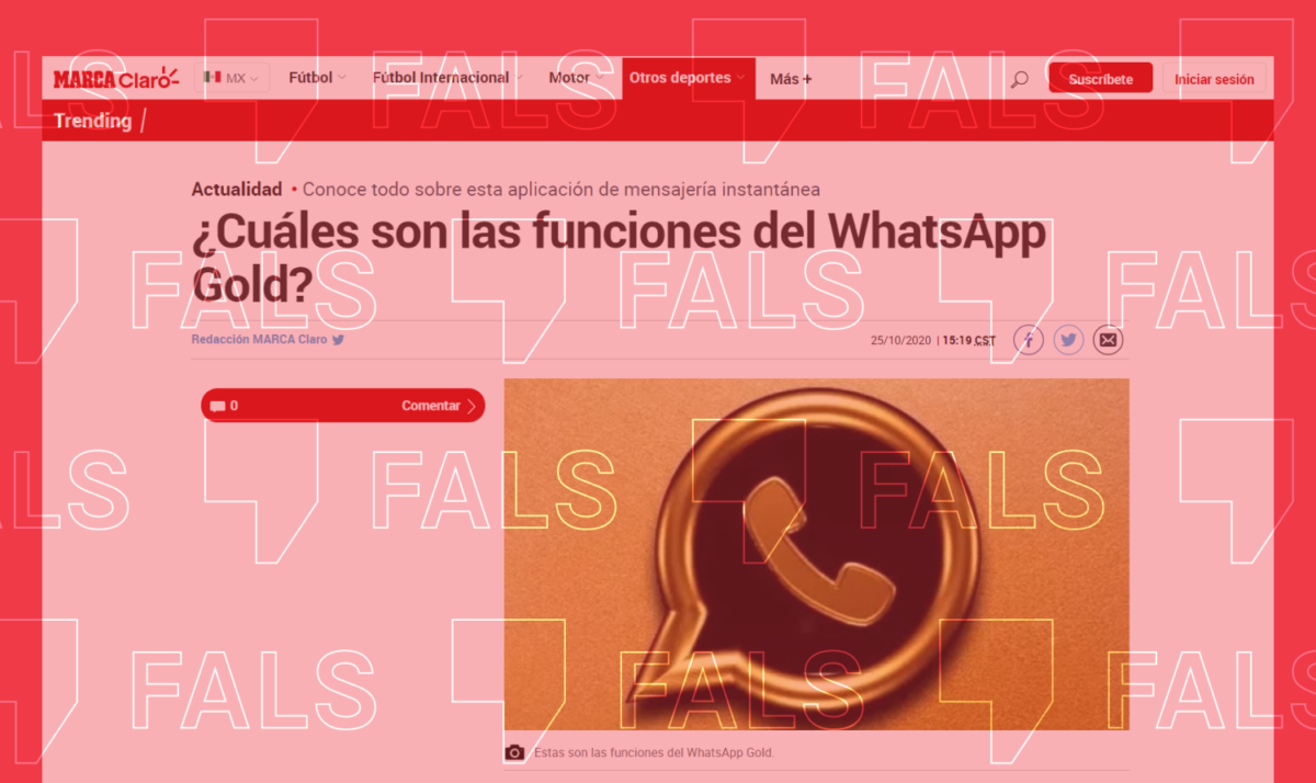 Fact-checkers internacionals com Full Fact han fet articles fa un temps explicant aquesta estafa i fins i tot l’Organització de Consumidors i Usuaris (OCU) van parlar-ne l’octubre del 2014 i el juny del 2016. A més, la Guàrdia Civil i la Policia Nacional ja van advertir el 2016 que WhatsApp Gold era phishing (o pesca de credencials), una pràctica que consisteix a suplantar la identitat d’algú per aconseguir informació personal i utilitzar-la posteriorment de manera fraudulenta.