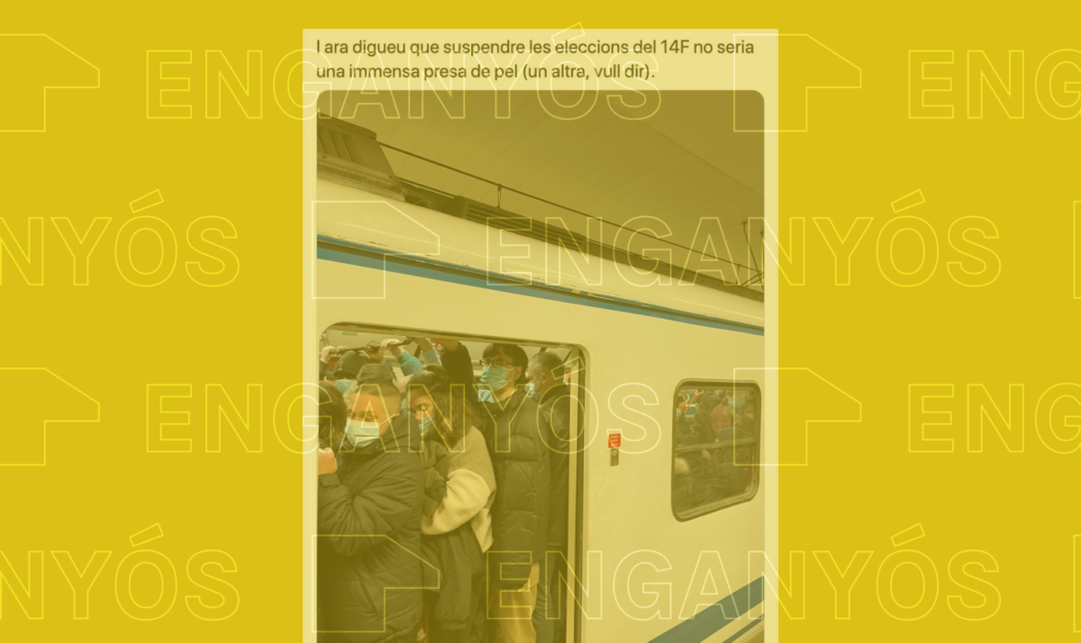 Des del dilluns 11 de gener s’ha viralitzat un tuit referent a la possibilitat que s’ajornin les eleccions al Parlament de Catalunya del 14 de febrer, tema que està aixecant una gran polèmica degut a les altes xifres de contagi diàries i al risc de rebrot. "I ara digueu que suspendre les eleccions del 14F no seria una immensa presa de pel (un altra, vull dir)", diu el text que acompanya una foto d’un vagó del metro de Madrid molt ple. El missatge és ENGANYÓS perquè les eleccions del 14F són les de Catalunya i la imatge correspon a Madrid.