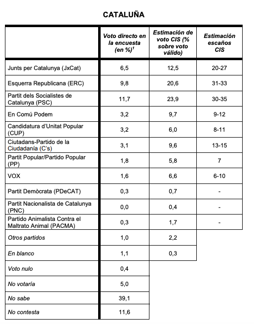 En clau de precampanya catalana, El Periódico va publicar una enquesta el 8 de gener que, per primer cop, situava el PSC com a guanyador dels comicis i ho atribuïa a la designació d’Illa com a candidat. El Centre d’Investigacions Sociològiques ha confirmat aquesta tendència en el seu darrer sondeig sobre estimació de vot: