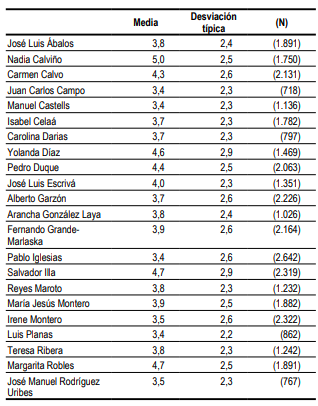 A nivell espanyol, segons el baròmetre del Centre d’Investigacions Sociològiques (CIS), Salvador Illa està entre els tres ministres més ben valorats, amb una nota de 4,7 sobre 10. Illa només és superat per la ministra d’Afers Econòmics i Transformació Digital, Nadia Calviño, i empata amb la de Defensa, Margarita Robles. Si ho comparem amb l’anterior baròmetre del CIS i que coincidia amb l’inici de la pandèmia, Illa millora la seva valoració, avançant dues posicions.