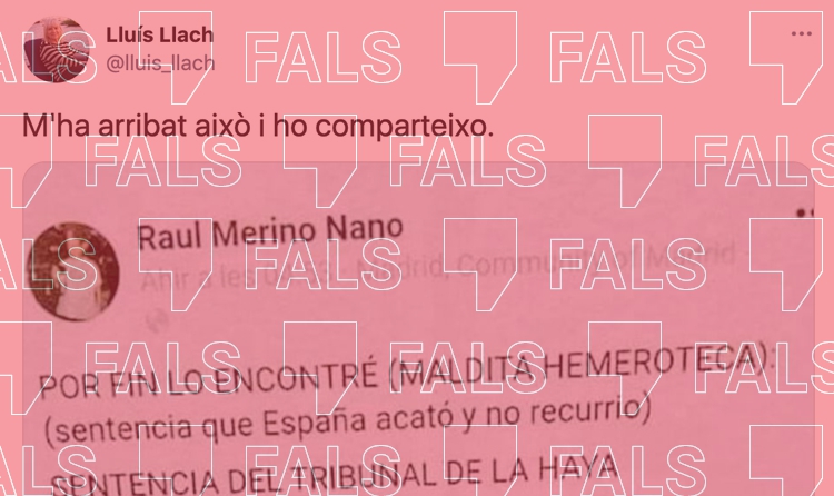 En les últimes hores s’ha viralitzat un tuit del cantautor Lluís Llach amb una suposada cita d’un dictamen del tribunal de La Haia (el Tribunal Internacional de Justícia) sobre Kosovo. Com ja vam verificar el novembre del 2019, és FALS. La Haia va reconèixer que la declaració d’independència de Kosovo no va violar el dret internacional, però no ha afirmat mai que quan hi ha contradicció entre la legalitat constitucional d’un estat i la voluntat democràtica preval aquesta segona.