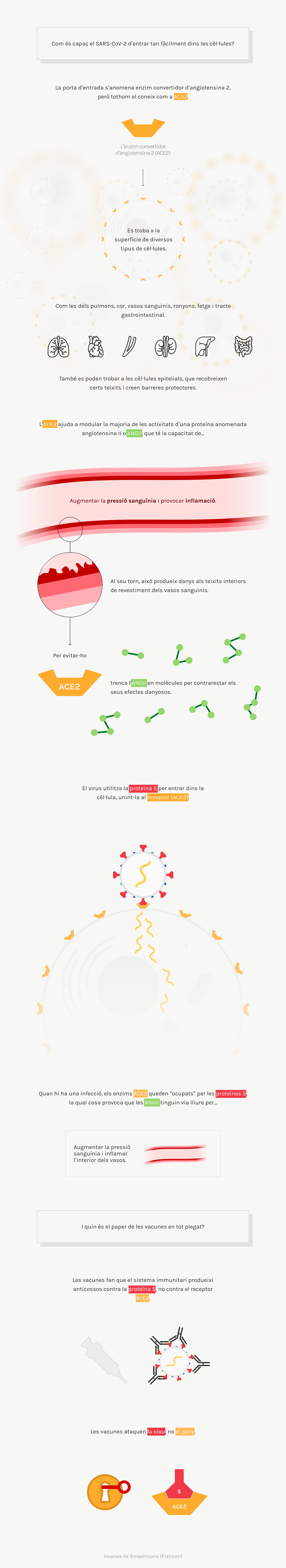 “Tot i que sí que pot haver-hi algun vincle entre la resposta immune que genera la vacuna i la miocarditis, el receptor de l'angiotensina-2 (ACE2) no té res a veure”, assegura l'expert. “Les vacunes produeixen anticossos contra la proteïna S, no contra el receptor de ACE. És a dir, ataquen la clau, i no el pany”, conclou.