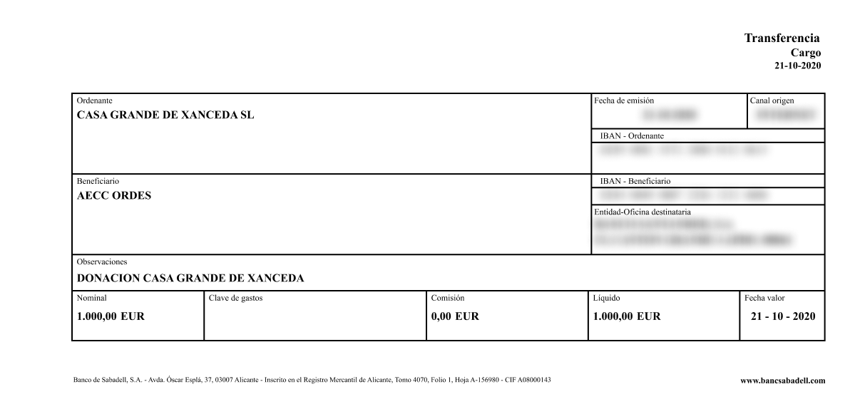 La donació es va acabar realitzant. Cinc dies després que es publiqués el vídeo a les xarxes, el 21 d’octubre del 2020, Casa Grande Xanceda va enviar els diners a l’AECC Ordes, segons es pot veure en la transferència bancària a la qual ha tingut accés Verificat. L’AECC no ha volgut confirmar aquesta informació perquè segons diuen “no estan autoritzats a proporcionar informació de les ajudes que reben”.