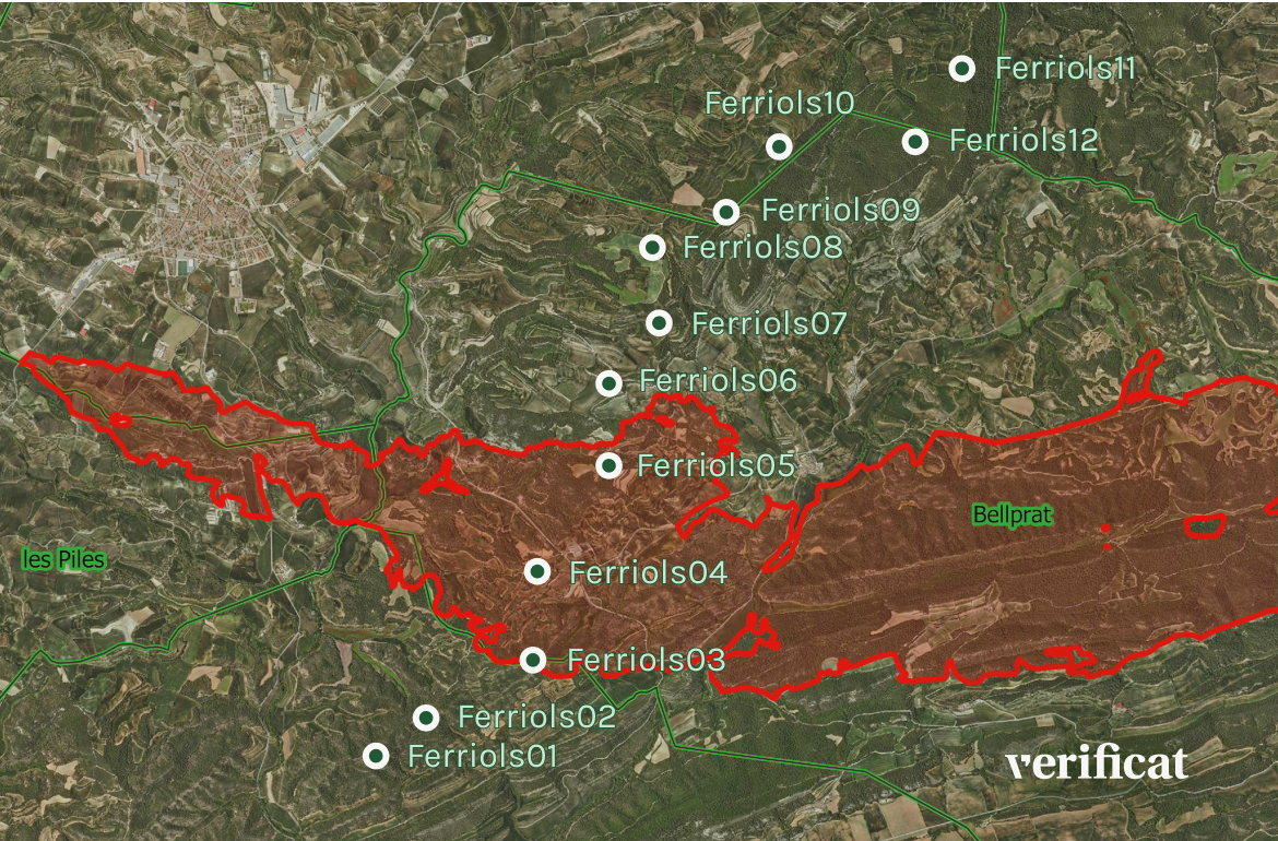 De fet, mentre que el Parc Eòlic Ferriols està projectat de sud a nord, l’incendi es va produir d’oest a est, gairebé per perpendicular al disseny del parc eòlic.
