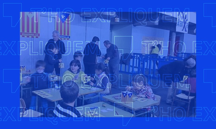 La imatge no és d’una escola, sinó que correspon a un taller de fanalets que va fer l’Assemblea Nacional Catalana de Berga a un pavelló esportiu de la ciutat el 2013