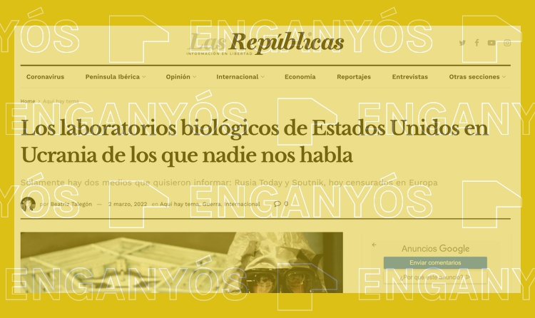 Aquesta declaració, que aparaeix en un article signat per Beatriz Talegón, a qui Verificat ha desmentit en repetides ocasions, és una declaració d’un periodista ucraïnès publicada originalment el 2015 en una pàgina web que es diu “Ucraïna.ru”, que pertany a l’Agència d’Informació Internacional Russia Today i és propietat de l’estat rus. La desinformació per part de mitjans de comunicació russos sobre aquests laboratoris no és nova. El 2020, l’ambaixada dels Estats Units a Ucraïna ja va avisar de la “desinformació russa sobre la forta associació entre els Estats Units i Ucraïna per reduir les amenaces biològiques”.