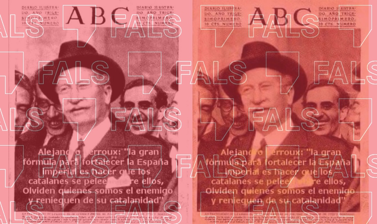 "La tipografia no es correspon amb la utilitzada per ABC i, a més, mai se superposaven sobre les imatges els titulars en aquella època", afegeixen des del rotatiu. L'equip d'arxiu d'ABC també detalla a Verificat que ells no han trobat a la seva base de dades "res semblant" a les declaracions atribuïdes a Alejandro Lerroux.