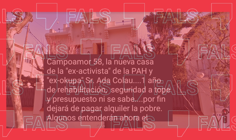 Missatges virals asseguren que l'alcaldessa de Barcelona, Ada Colau, s'hauria comprat una casa al número 58 del carrer Campoamor, al barri barceloní d'Horta. Es tracta d'un habitatge modernista amb més de 450 metres quadrats de superfície, piscina i que va ser construït a principis del segle XX per a l'escriptor català Eduard Coca.