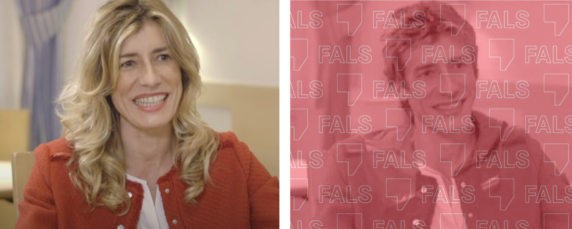 Un dels muntatges que s'ha difós per viralitzar el rumor sobre Begoña Gómez és una fotografia en blanc i negre que, suposadament, correspondria a la seva joventut. Tot i això, la imatge manipulada és, en realitat, un fotograma de l'entrevista que la cònjuge del president espanyol va concedir al programa Espejo Público d'Antena 3 el juny de 2016, com va revelar Maldita.es, membre de la International Fact-Checking Network, la xarxa internacional de verificadors a la qual també pertany Verificat.